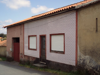 Uma casa com uma original fachada de apresentação, de mosaicos que cobrem a parede frontal. Dos herdeiros de Joaquim Ferreira Rachinhas, em Carvalhal da Portela.